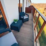 Lulu Apartments - Apartament Frida Blisko Morza - Resort Kolobrzeg Parking I Basen Z Sauna W Cenie beschikt over een balkon en een zitruimte, uitgerust met moderne voorzieningen zoals een TV en een flatscreen TV met satellietzenders om uw verblijf nog aangenamer te maken. Het appartement beschikt over 1 badkamer met een apart toilet en een douche, waar kamerjassen en handdoeken worden er ook verstrekt.